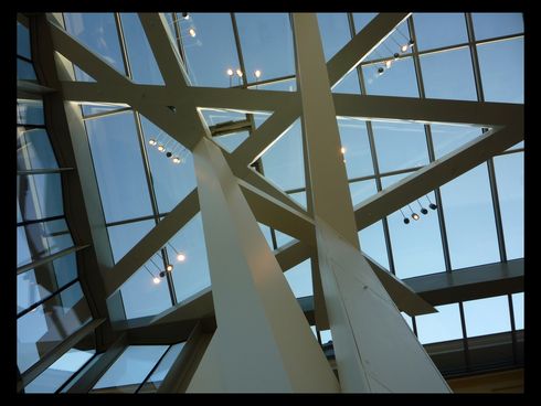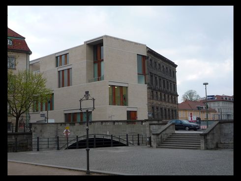 Daniel Libeskind je autorem i zastřešení staré barokní budovy, kde jsou opět vidět jeho typické znaky - protínající se linie a žádné pravé úhly...