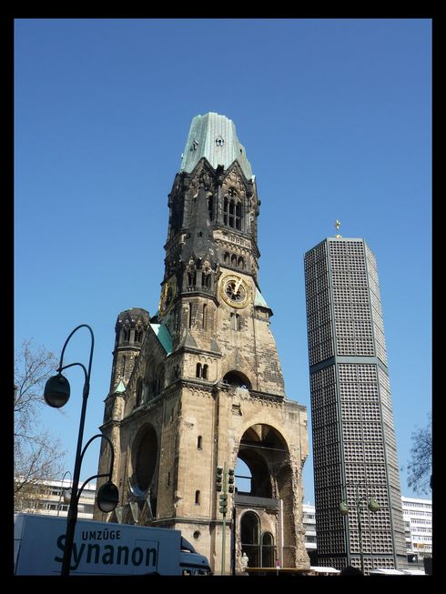 Kostel Gedächnitskirche na hlavní nákupní třídě je dalším kontrastem Berlína. Kostel, který byl během 2.sv. války poničen, zůstal neopraven v původním stavu. Proudí okolo něj davy, jen už se nedívají na kostel, ale do výloh prestižních obchodů. Připadám si trochu jak z jiného světa, když se pokouším na něj zaostřit foťákem.