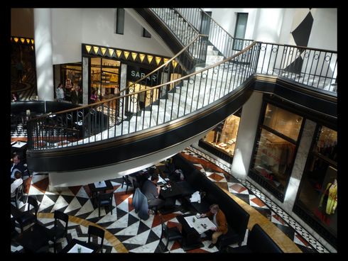 Nedaleko zastávky metra Unter den Linden se nachází Lafayette galerie s krásným černobílým schodištěm, ale také s jakýmsi trychtýřem od Jeana Nouvela.